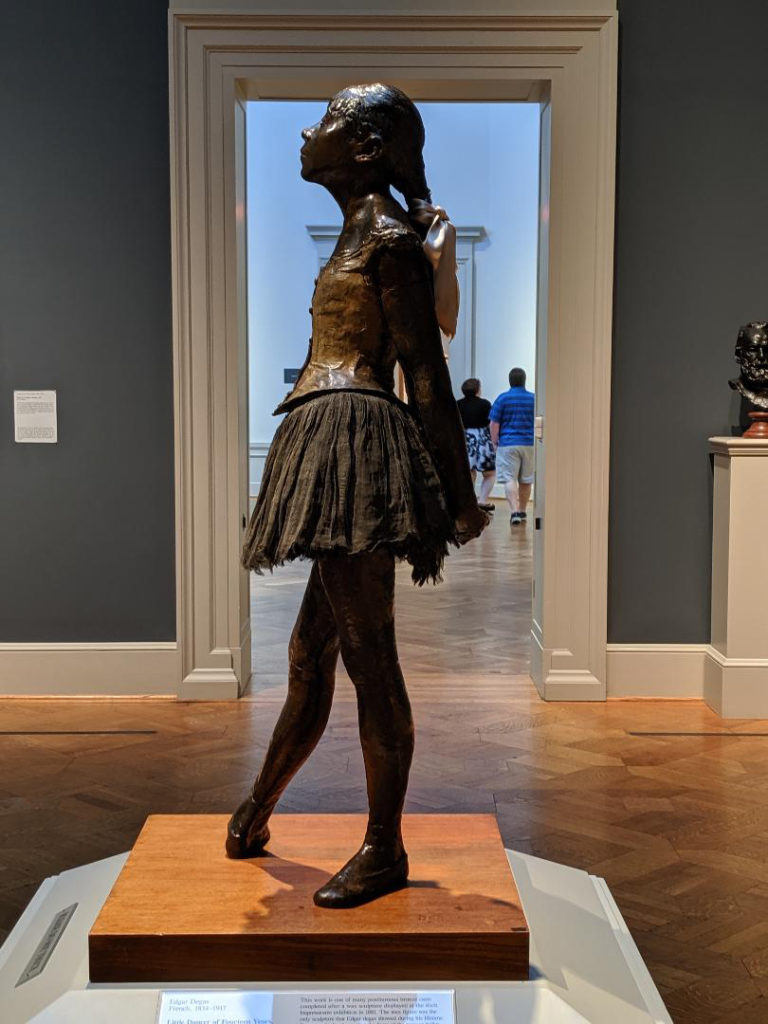 What I like most about this casting is that they aren’t afraid to go with the mixed media, adding in muslin and ribbon to add to the illusion of our little dancer being just as alive and bravely stepping out onto the stage as she would have been in her lifetime.